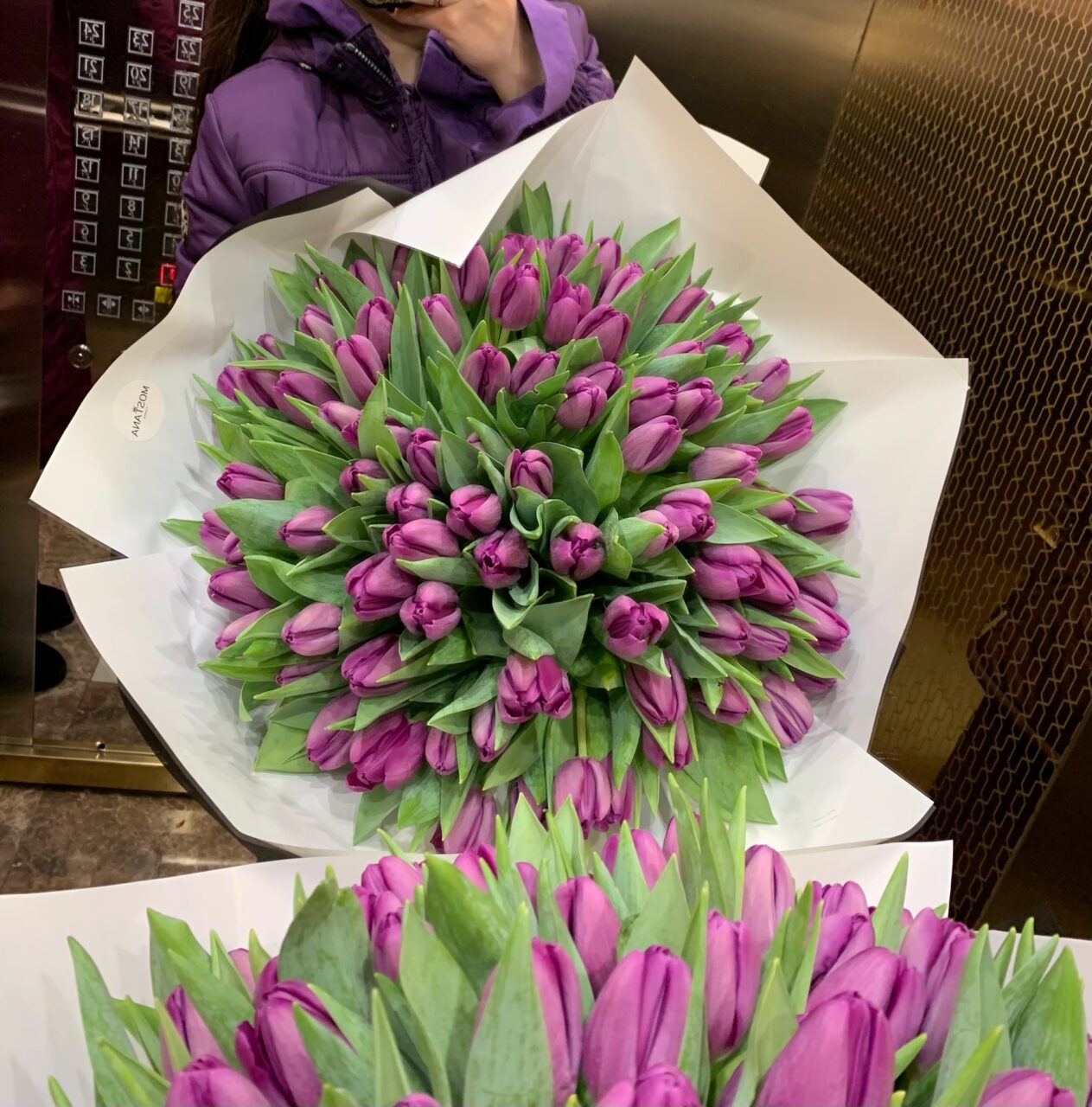 Фантастический букет из 101 тюльпана. Количество и оттенок тюльпанов можно изменить по запросу клиента.